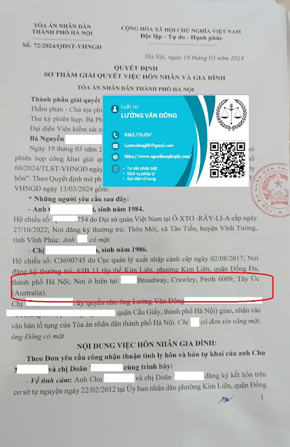 - Ly hôn đơn phương không biết thông tin và địa chỉ của người Việt Nam đang ở nước ngoài;