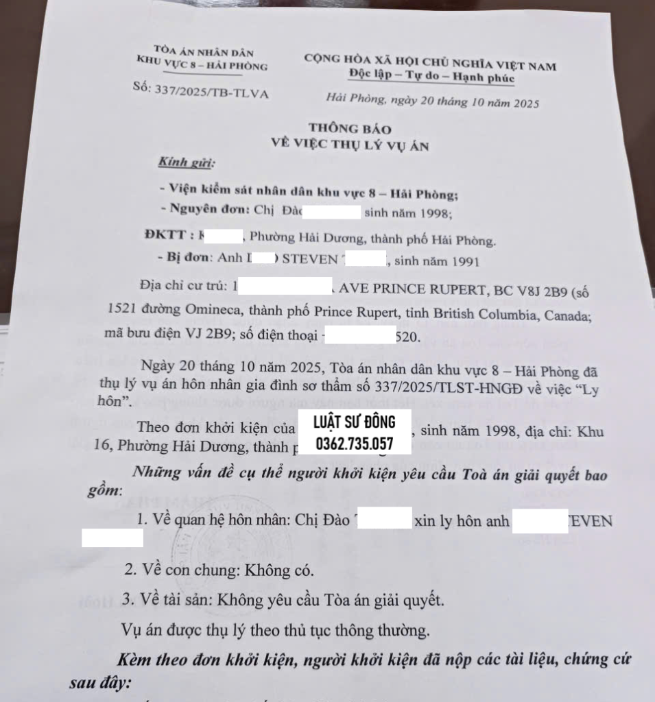 - Ly hôn đơn phương: Nộp đơn tại Tòa án nơi bị đơn cư trú trước khi đi nước ngoài.